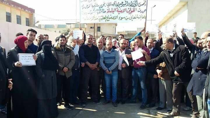 اعتصم العشرات من الكوادر التربوية في جانب الموصل الايسر المحرر للمطالبة بصرف الرواتب المتراكمة.