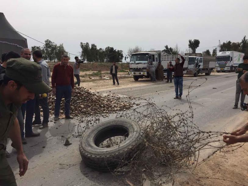 تظاهر العشرات من سائقي الشاحنات التجارية احتجاجا على اجراءات سيطرة الصفرة بعد أن تم قطع الطريق الرابط بين بغداد وكركوك بالسواتر الترابية.