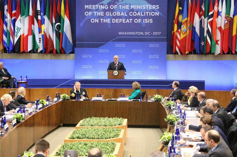 وعقد وزراء خارجية 68 دولة اجتماعا موسعا في العاصمة الأميركية واشنطن يوم أمس، للاتفاق على الخطوات المقبلة لهزيمة تنظيم داعش في الشرق الأوسط وشمال إفريقيا، وقطع أذرعه في أوروبا والعالم.