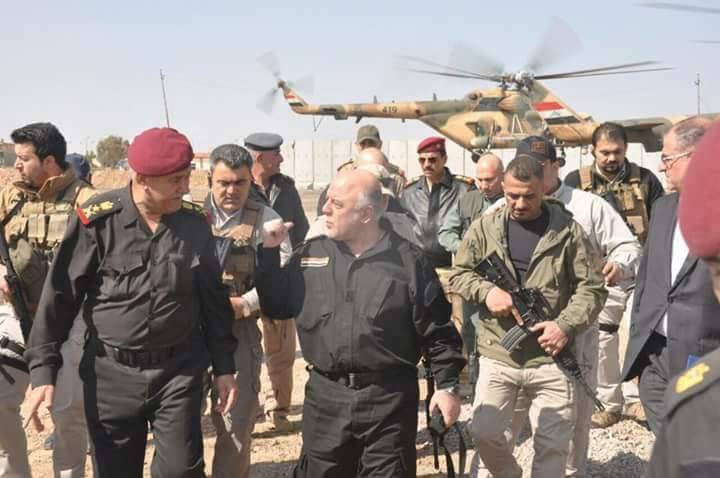 زار رئيس الوزراء حيدر العبادي مقر قيادة العمليات المشتركة و اجتمع بالقيادات العسكرية والامنية لعمليات قادمون يانينوى ، و اوضح المكتب الاعلامي الخاص للعبادي انه خلال اللقاء تمت مناقشة خطط المعركة واصدار التوجيهات لـ القوات الامنية لحسم المعركة ، و اطلع العبادي خلال الزيارة على آخر المستجدات العسكرية الخاصة بتحرير الجانب الايمن للموصل مشيدا بجهود القوات الامنية التي تكافح من اجل تحقيق النصر والحاق الهزيمة بداعش ، كما اكد العبادي ان تضحيات القوات الامنية ودماء الشهداء والجرحى كان لها الدور الكبير بتحقيق النصر ، لافتا الى ان العراقيون عازمون على تحرير كامل الاراضي العراقية التي اغتصبتها العصابات الارهابية.