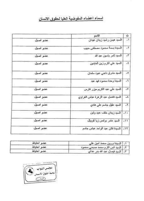 وقال عضو مجلس النواب العراقي علي الصافي ، إن “مجلس النواب العراقي صوت على أعضاء مفوضية حقوق الإنسان وبذلك أعطاهم الثقة ليباشروا بمهام عملهم بعد أن انتهى عمل المفوضية السابقة العام الماضي”.