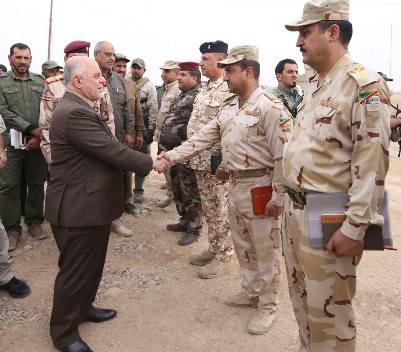 تفقد رئيس الوزراء القائد العام للقوات المسلحة حيدر العبادي القطعات العسكرية في منطقة شيالة عند خط الصد باتجاه ساحل الشرقاط الايسر.
