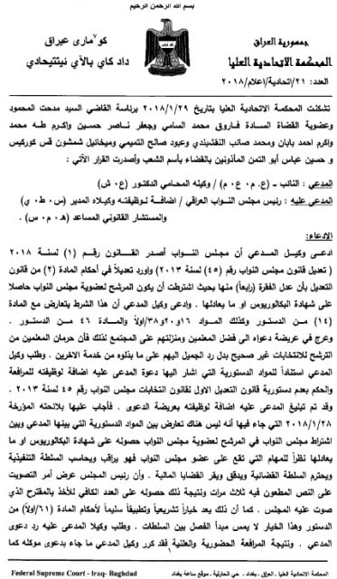 Posted in أهم الأخباربالوثيقة.. الاتحادية ترد طعنا جديدا من احد النواب على فقرة الشهادة لمرشحي الانتخاباتby iraq•6 فبراير، 2018•0 iraq More by iraq