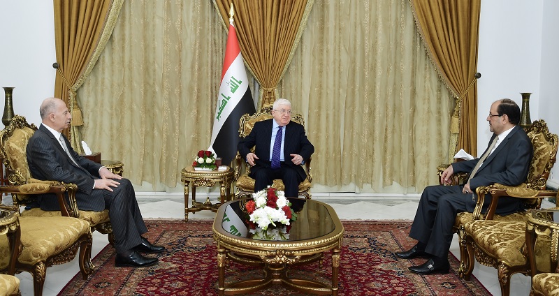 بحث رئيس الجمهورية، فؤاد معصوم، الخميس، مع نائبيه نوري المالكي وأسامة النجيفي 6 ملفات منها تأخير الرواتب واستقطاعاتها بالاضافة الى الاوضاع السياسية الراهنة في العراق والمنطقة.