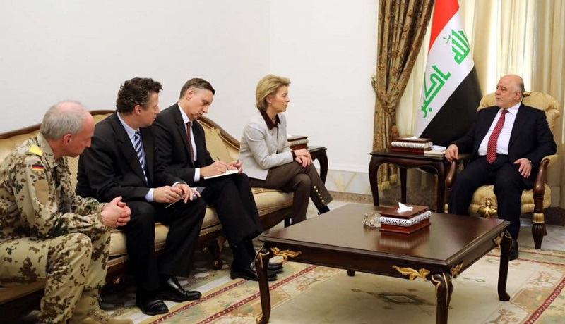 وذكر البيان أن “رئيس مجلس الوزراء حيدر العبادي استقبل في مكتبه اليوم السبت وزيرة الدفاع الالمانية اورسولا فون دير لاين والوفد المرافق لها”.