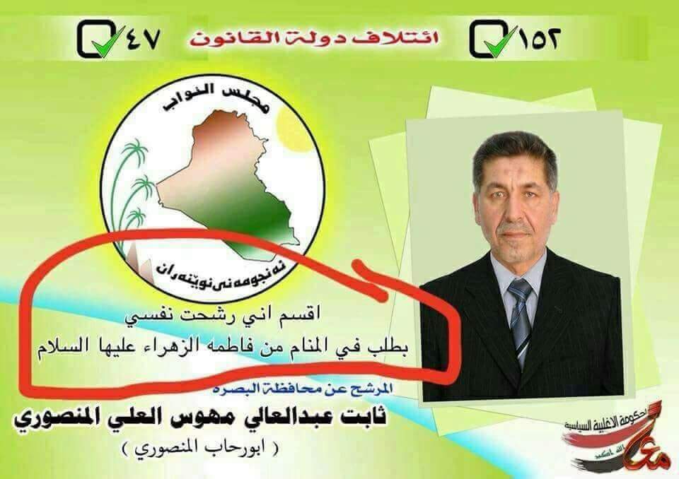 Posted in أهم الأخبارمرشح في البصرة عن دولة القانون يرشح نفسه بامر من فاطمة الزهراء !by iraq•24 أبريل، 2018•0 iraq More by iraq