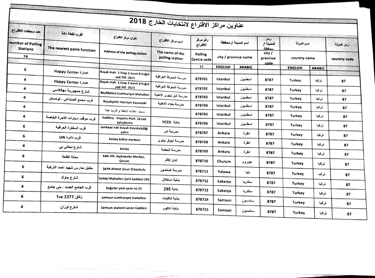 Posted in أهم الأخبارالمفوضية العليا للانتخابات تنشر جدول مراكز الاقتراع للعراقيين المقيمين في تركياby iraq•5 مايو، 2018•0 iraq More by iraq