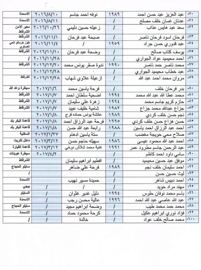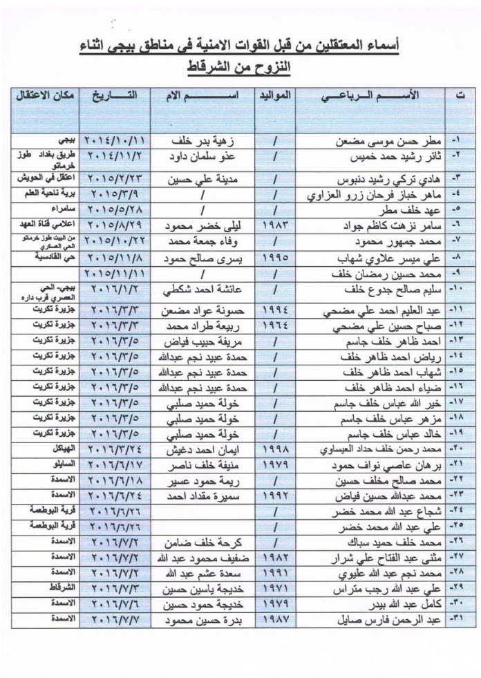 وأرفق الجبوري في تغريدة عبر حسابه الرسمي على تويتر تابعتها وكالة أنباء عراقيون، صور لقوائم أسماء جزء من المغيبين الذين اعتقلتهم القوات الأمنية والحشد، بحسب ادعائه.