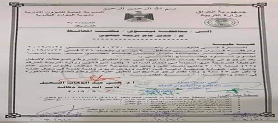 الغت وزارة التربية امر تعيين اسيل العبادي بمنصب مدير عام تربية نينوى بسبب عدم امتلاكها الشروط والمؤهلات .