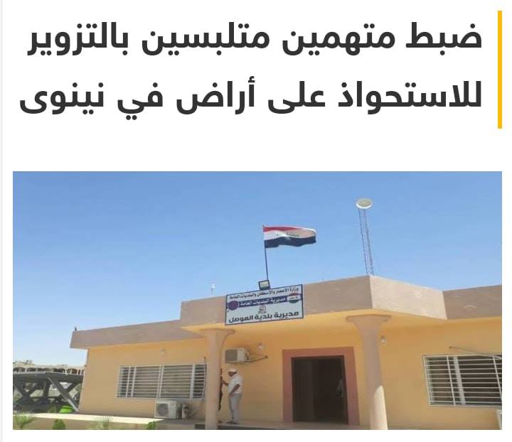 وفي سياق آخر أكدت دائرة التحقيقات أن فريق عمل المديرية الذي انتقل إلى مديرية التسجيل العقاري نينوى – الزهور، تمكن بالتنسيق مع مكتب المفتش العام لوزارة العدل – فرع المنطقة الشمالية ومكتبي الاستخبارات ومكافحة الإرهاب في المحافظة ، فضلا عن جهاز الأمن الوطني في مديرية التسجيل العقاري، من ضبط أحد المتهمين أثناء حصوله على صورة قيد عقار تعود ملكيته لأحد المواطنين بموجب مستمسكات مزورة، إضافة إلى ضبط وكالات وصور قيود وأوليات ومستمسكات مزورة مختلفة.