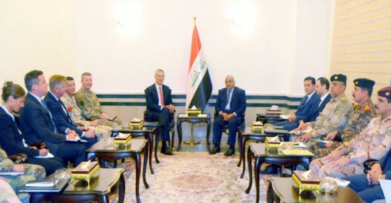 واكد عبد المهدي خلال لقائه الأمين العام لحلف الناتو، ينس ستولتنبرغ، والوفد المرافق له، أن العراق يسير بالاتجاه الصحيح في جميع المجالات، ويشهد استقرارا واضحا، معربا عن شكره لحلف الناتو للمساعدة في قتال داعش وهزيمته، مضيفا ان الحكومة لديها رؤية واضحة لمواجهة التحديات الداخلية والخارجية، والعمل بجدية لسيادة القانون وحصر السلاح بيد الدولة.