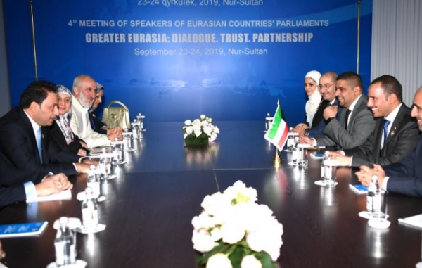 وذكرت وكالة الانباء الكويتية نقلاً عن شبكة {الدستور} الاخبارية، أن “رئیس مجلس الأمة الكويتي مرزوق علي الغانم بحث مع النائب الأول لرئیس مجلس النواب حسن الكعبي في كازاخستان سبل التنسیق إزاء الملفات والقضایا المزمع طرحھا في مؤتمر الاتحاد البرلماني الدولي المقرر عقده في بلغراد أكتوبر المقبل”.