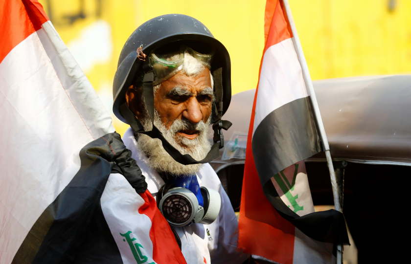 متظاهرون عراقيون في شوارع بغداد / رويترز