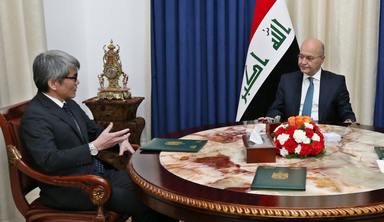 جاء ذلك خلال استقباله السفير الياباني، ناوفومي هاشيموتو في قصر السلام ببغداد، اليوم، 29 كانون الأول 2019، حيث أفاد بيان لرئاسة الجمهورية، أنه جرى خلال اللقاء، تناول أهمية العلاقات بين العراق واليابان وسبل الارتقاء بها في المجالات كافة، فضلا عن الاستفادة من الخبرات اليابانية في عملية إعادة الإعمار.