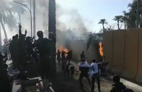 اقتحم محتجون حرم السفارة الأميركية في العاصمة بغداد ،الثلاثاء، وسط حضور قيادات بارزة من الفصائل المسلحة والحشد الشعبي.