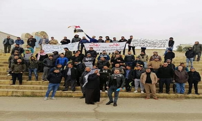 نظم العشرات من المفصولين من عناصر شرطة نينوى ، اليوم الثلاثاء ، وقفة احتجاجية في منطقة المنصة بايسر الموصل .