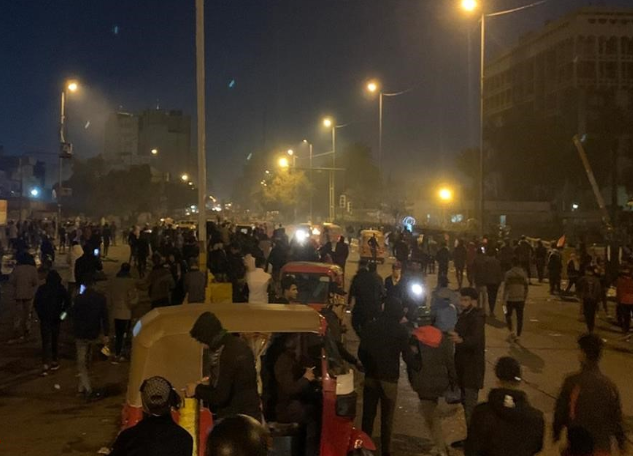 ووقعت الاشتباكات بعد أن شرعت السلطات في إزالة حواجز خرسانية قرب الساحة الشهيرة ، حيث يعتصم المحتجون المناهضون للحكومة منذ شهور، وعلى جسر رئيسي واحد على الأقل على نهر دجلة في بغداد.