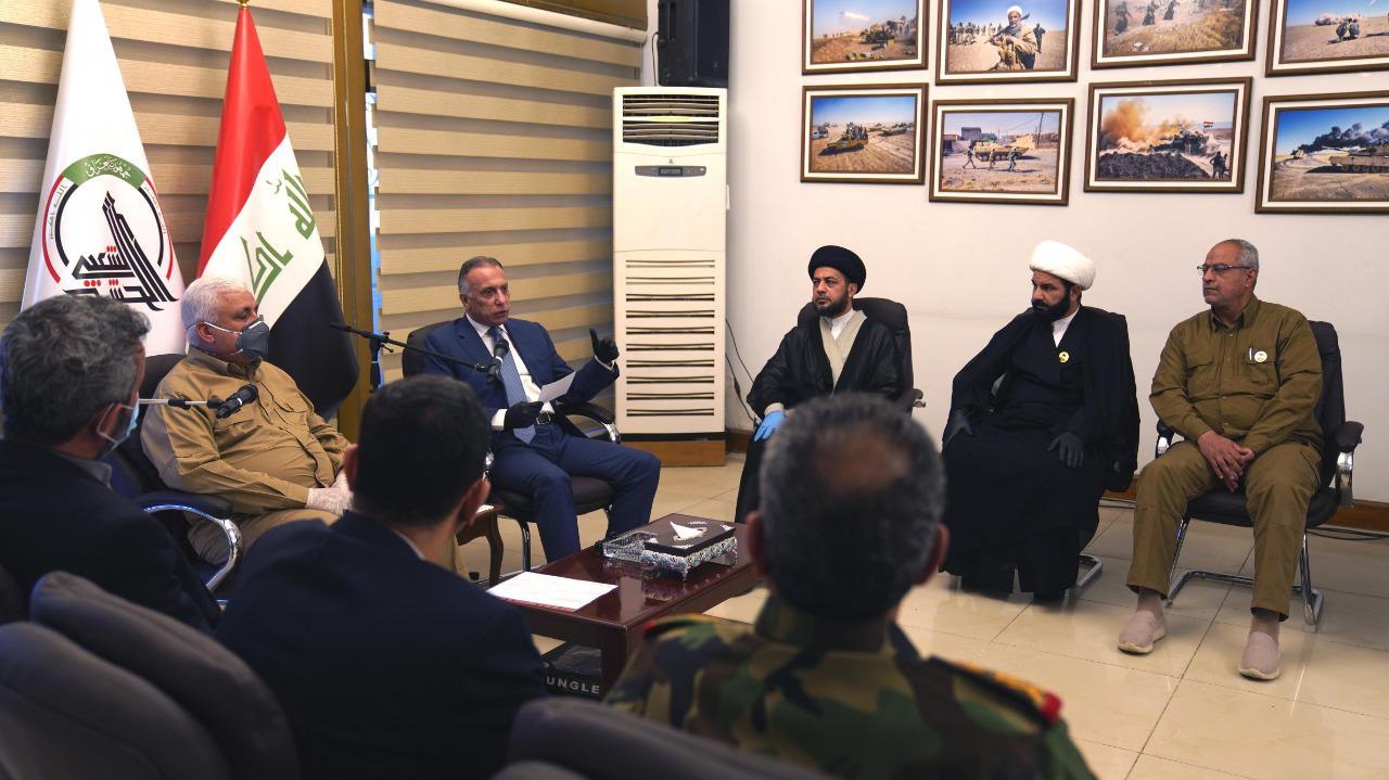 وحذر الكاظمي من وجود بعض الأصوات النشاز التي تحاول ايجاد فجوة بين الحشد وبين الدولة ، قائلا إن هذا التشكيك يجب أن يتوقف، لافتا الانتباه الى أن الحشد تأسس استجابة لفتوى المرجعية الدينية ممثلة بالسيد علي السيستاني وأن الانتقاص من شهدائه من قبل أية جهة كانت أمر مرفوض تماماً.