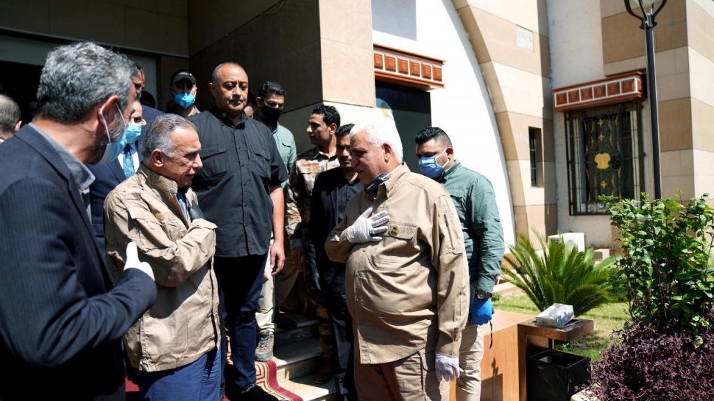 وكان في استقبال رئيس مجلس الوزراء رئيس هيئة الحشد الشعبي، السيد فالح الفياض، الذي القى كلمة رحب فيها بزيارة السيد الكاظمي، وأشار فيها الى تضحيات الحشد الشعبي في الدفاع عن الوطن.