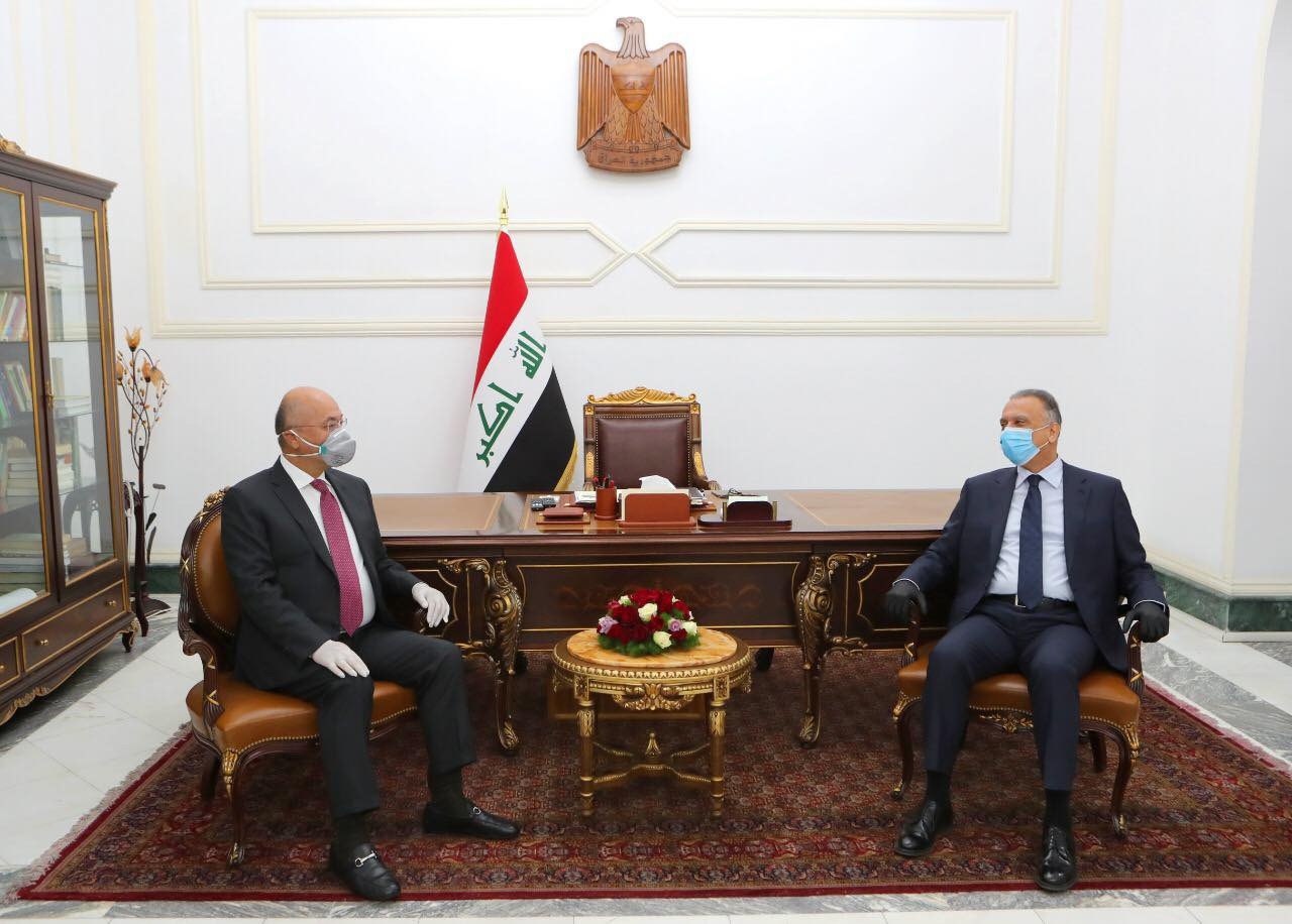 اكد كل من رئيس الجمهورية برهم صالح ورئيس مجلس الوزراء مصطفى الكاظمي خلال لقاء جمعهم اليوم في القصر الرئاسي ، على ضرورة الإسراع بإكمال الكابينة الوزارية بترشيح شخصيات كفوءة ونزيهة ودعم الحكومة في تنفيذ برنامجها الذي صوّت عليه مجلس النواب من خلال الإعداد لإجراء انتخابات مبكرة وتلبية مطالب العراقيين المشروعة بتحقيق الإصلاح المنشود.