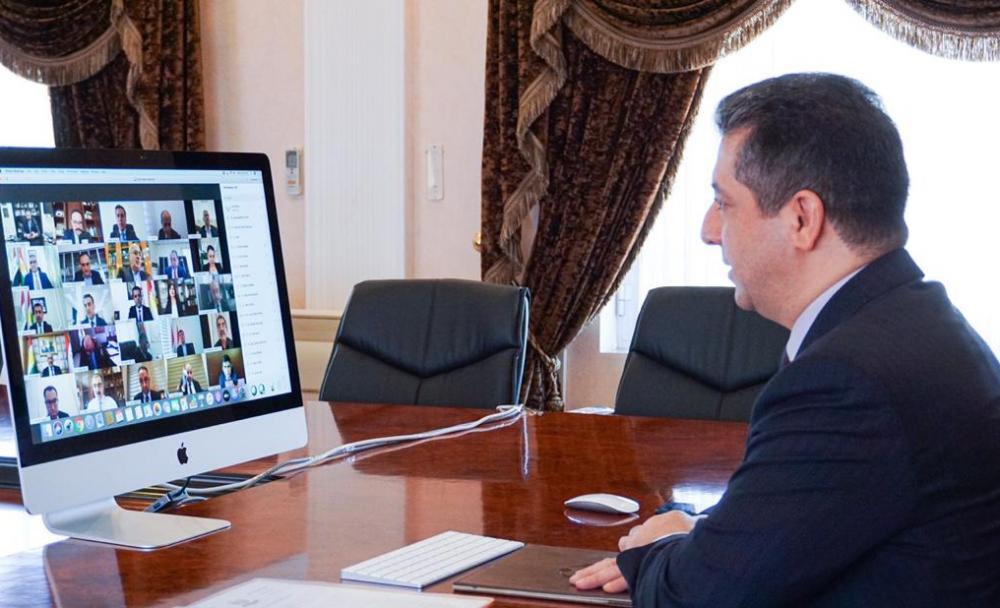 عراقيون/متابعة/ عقد مجلس وزراء إقليم كردستان، اليوم الأربعاء، جلسته الاعتيادية برئاسة رئيس مجلس الوزراء مسرور بارزاني وبحضور نائب رئيس مجلس الوزراء قوباد طالباني، وذلك عبر دائرة تلفزيونية مغلقة بنظام (الفيديو كونفرانس).