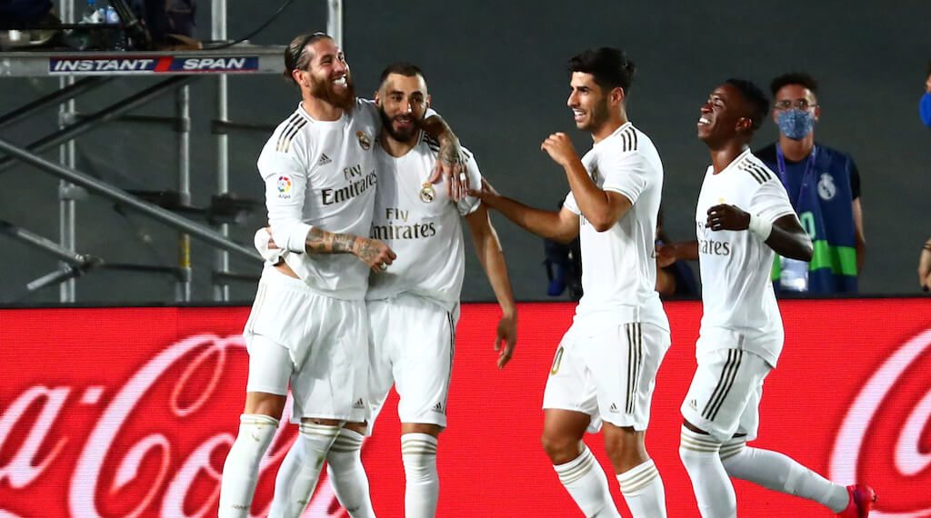 وفي الدقيقة ” 14 ” أرسل كاسيميرة كرة طولية الى بنزيما الذي سددها على الطائر لكنها بجوار المرمى، ثم سجل ريال مدريد هدف التقدم بعد كرة افتكها كاسيميرة لتصل الى مورديتش الذي مررها الى كريم بنزيما الذي سددها في الشباك في الدقيقة ” 29 “، ثم هدأت المباراة نسبياً بين الفريقين.