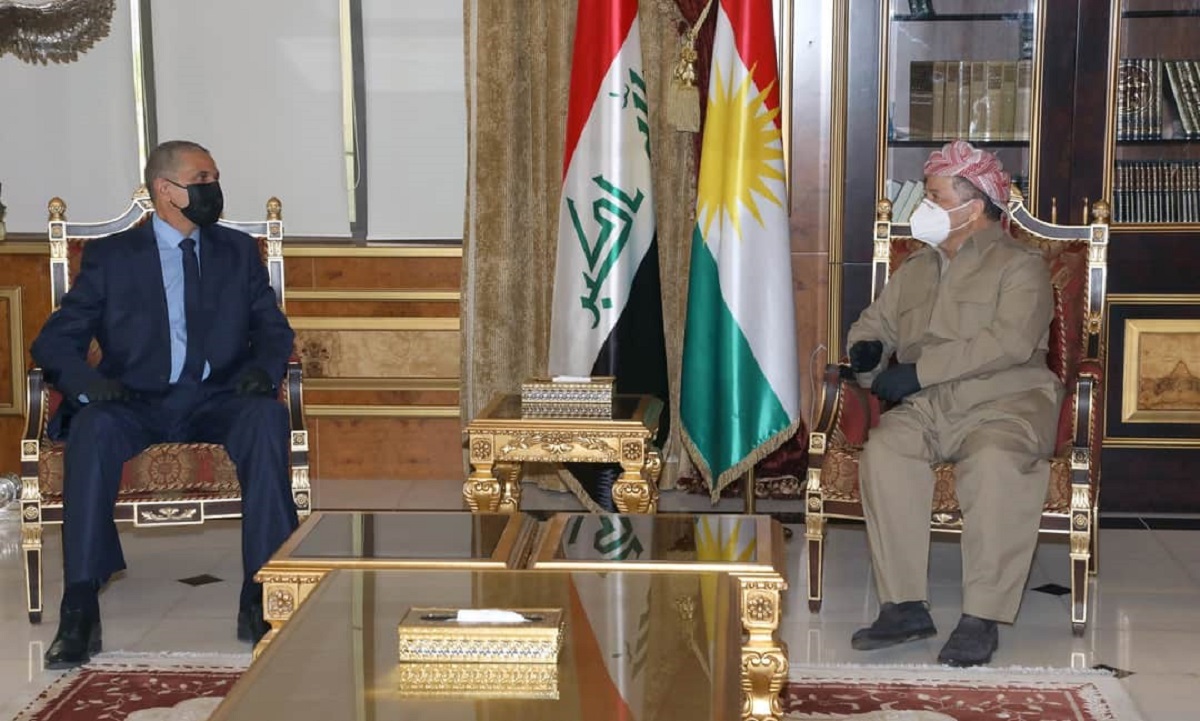 بحث رئيس الحزب الديمقراطي الكردستاني مسعود بارزاني، اليوم الاربعاء، مع وزير داخلية العراق عثمان الغانمي أمن المناطق الخارجة عن ادارة اقليم كوردستان.
