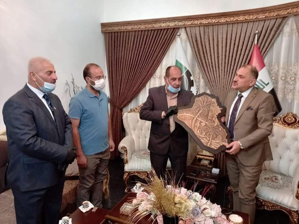 وفي نهاية اللقاء أهدى رئيس نقابة الصحفيين في نينوى السيد ” نوفل الرواي ” الذي ترأس الوفد درع العراق لوزير الصناعة ” منهل عزيز الخباز ” تعبيراً عن أن العراق أمانة في أعناقنا .