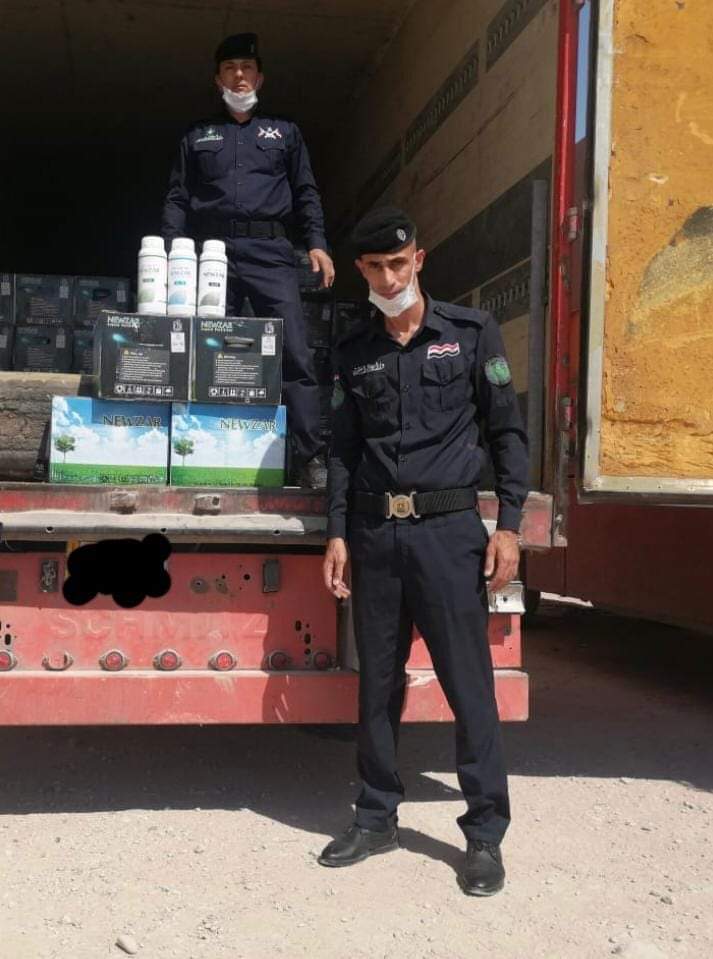 وقال الداخلية في بيان تابعته عراقيون “تمكنت مفارز مركز شرطة زرباطية التابعة الى مديرية شرطة كمارك المنطقة الثالثة وباشراف مباشر من قبل العميد شهيد محمد اسماعيل مدير شرطة كمارك م/٣ من ضبط عجلتين محملتين بمادة ( سماد سائل) بوزن (14400و16800) وبواقع (1200) كارتون و(1400) كارتون ولعدم وجود اوراق اصولية وموافقات تم تم استحصال موافقة قاضي التحقيق لاتخاذ الاجراءات القانونية مع الشحنة”.