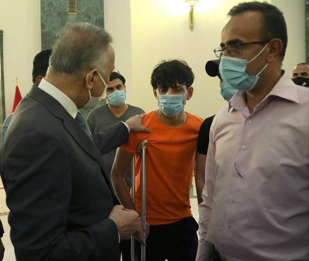 وتعهد الكاظمي حسب بيان مكتبه الإعلامي تابعته عراقيون ” تأمين علاج جرحى المتظاهرين، ونقل بعضهم للعلاج الى خارج العراق إنْ تطلّب الأمر، فضلا عن بحث شمولهم باستثناءات رواتب شبكة الحماية الاجتماعية، كما تعهد باتخاذ كل الإجراءات القانونية اللازمة من أجل استرجاع حقوقهم”.