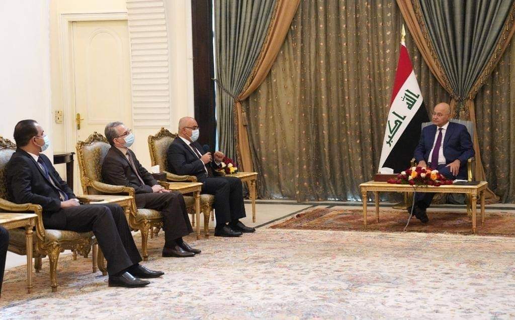 عراقيون/متابعة/ استقبل السيد رئيس الجمهورية الدكتور برهم صالح، اليوم الاثنين 2 تشرين الثاني 2020 في قصر السلام ببغداد، وفداً موسعاً ضم وزير التعليم العالي والبحث العلمي نبيل كاظم عبد الصاحب، ووكيل الوزارة للشؤون العلمية، ونقيب الاكاديميين ورئيس جهاز الاشراف والتقويم، ورؤساء جامعات بغداد والمستنصرية وابن سينا، والكادر المتقدم في وزارة التعليم العالي.
