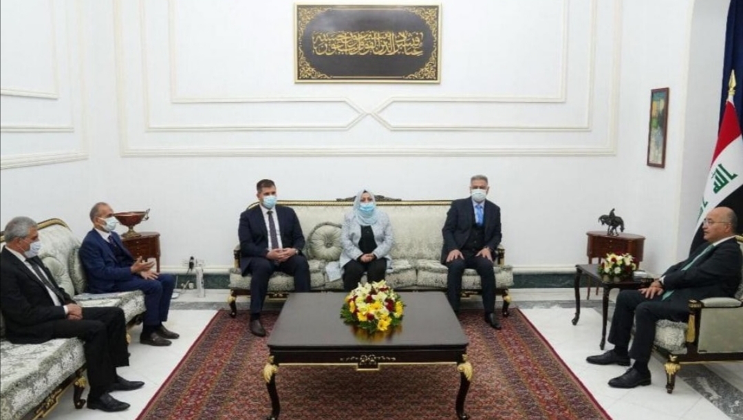 استقبل السيد رئيس الجمهورية الدكتور برهم صالح، اليوم الاثنين 7 كانون الأول 2020 في قصر السلام ببغداد، رئيس الجبهة التركمانية السيد أرشد الصالحي، حيث تم بحث مجمل تطورات الأوضاع الأمنية والخدمية في كركوك، والقضايا التي تواجه أهلها، مع ضرورة تعزيز أمنهم وسلامتهم وتوفير الخدمات لهم.وجرى، خلال اللقاء، التأكيد على ضرورة معالجة المسائل العالقة في كركوك من خلال الاحتكام إلى الدستور، وحل الإشكالات التي تواجه المدينة عبر الحوار والتلاقي بين سكانها الأصليين، والشروع في تحسين أوضاعهم وتجاوز معاناتهم بسبب سياسيات الاستبداد والفساد والتمييز، وأن تكون الحلول مستندة إلى إرادة الكركوكيين بعيداً عن التهميش والإقصاء، وتضمن الاستقرار والتعايش السلمي بين جميع المكونات والأطياف.