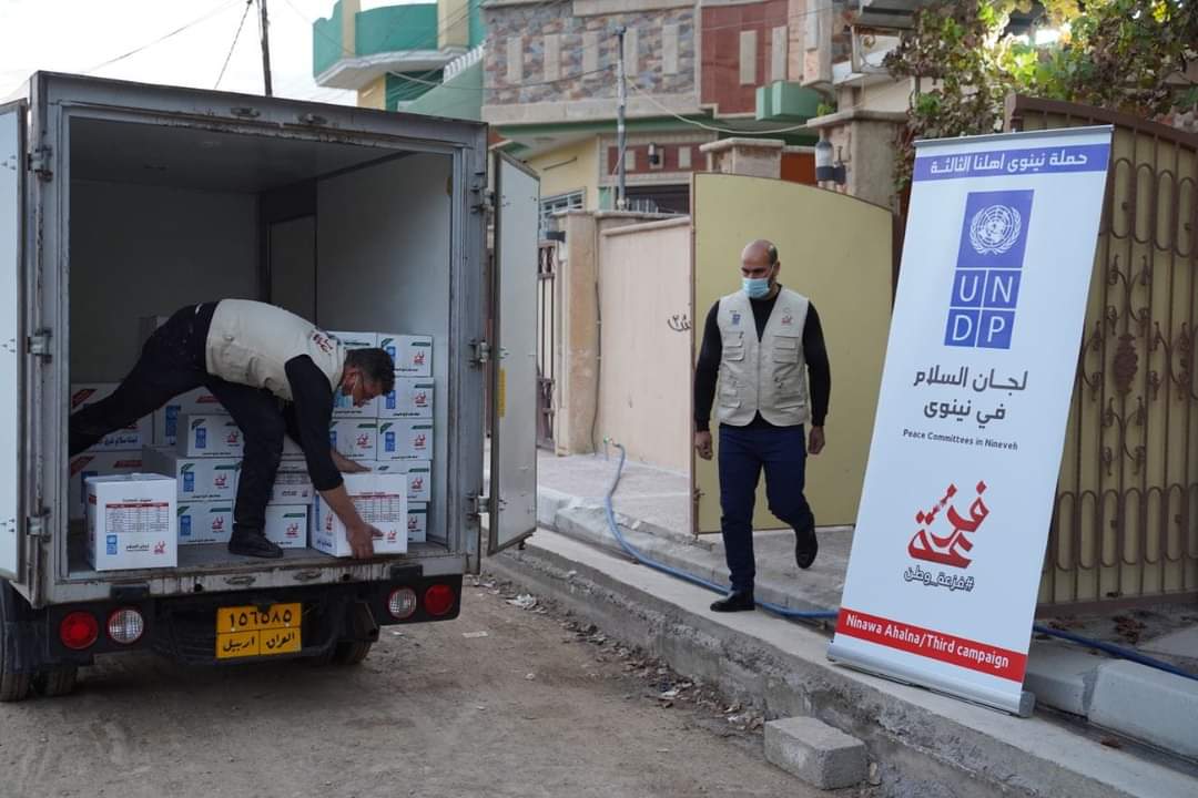 وزعت منظمة الـ undp الأممية، وبالتعاون مع منظمة فزعة الإنسانية ،ولجان السلام في الموصل ، سلال المواد الغذائية والمستلزمات الصحية، على العائلات المستحقة في مناطق مختلفة من محافظة نينوى .