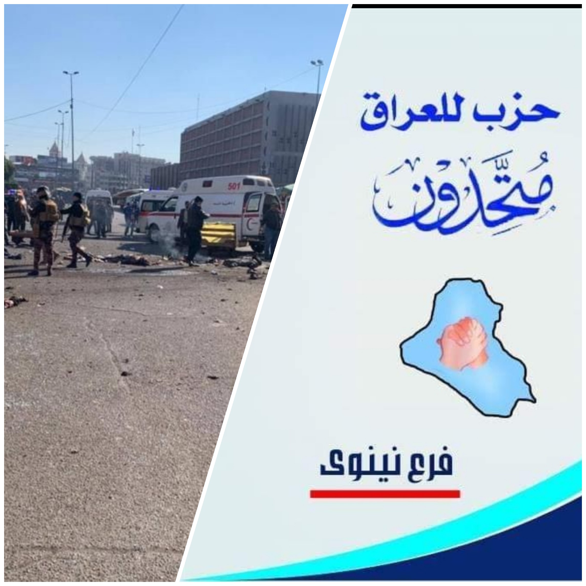 عراقيون / متابعة / أدان مكتب تنظيمات نينوى – حزب للعراق متحدون التفجيرات الدامية التي ضربت العاصمة بغداد صباح اليوم مُستهدفة شريحة مُعدمة من المواطنين .