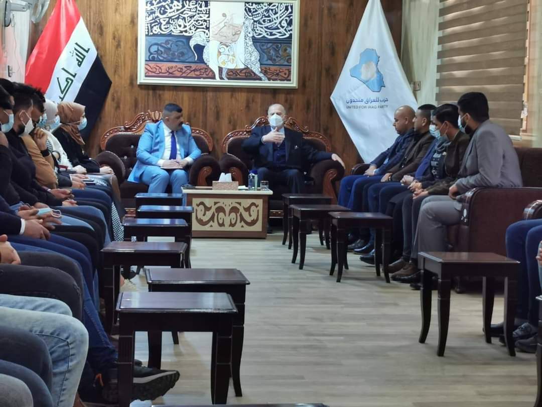 عراقيون/متابعة/ عقد السيد أسامة النجيفي رئيس جبهة الإنقاذ والتنمية والأمين العام لحزب للعراق متحدون اليوم الثلاثاء في مقر الحزب بمدينة الموصل، إجتماعاً مع مكتب الطلبة والشباب لحزب للعراق متحدون ، وبعد أن استمع إلى شرح قدمه الشباب الحاضرون عن رؤاهم ومشاكلهم وتطلعاتهم واقتراحاتهم ، ألقى كلمة مهمة استقبلت بتعاطف وتأييد شديدين من قبل الشباب ، حيث أكد السيد النجيفي بأن الشباب طاقة كبيرة ، وهم وقود التغيير الإيجابي ومادته الأساسية ، وعليهم تقع مسؤولية العمل والتطابق مع هموم أهلهم وقيادة التغيير المنشود لكسب الحياة الكريمة لشعبهم .
