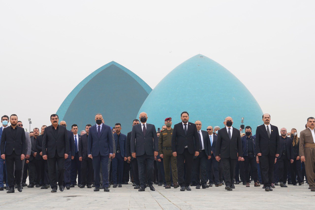 وشارك في المراسم كل من رئيس الجمهورية برهم صالح، ورئيس الوزراء مصطفى الكاظمي ونائب رئيس مجلس النواب حسن الكعبي ووزير الخارجية فؤاد حسين، وكبار المسؤولين ورؤساء البعثات الدبلوماسية في العراق، فضلاً عن عدد من ذوي الضحايا.