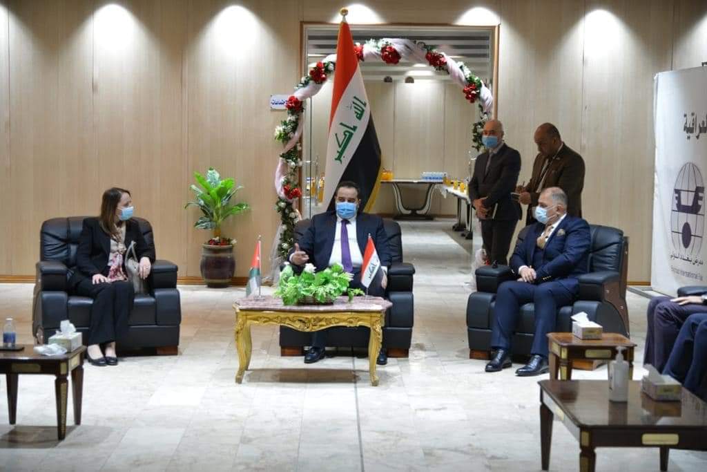 وذكر اعلام وزارة التجارة في بيان حصلت وكالة أنباء عراقيون على نسخة منه “التقى وزير التجارة الدكتور علاء احمد الجبوري اليوم الاربعاء وزيرة التجارة والصناعة والتموين الاردنية مها علي والوفد المرافق لها بحضور وزير الصناعة والمعادن العراقي منهل الخباز لبحث امكانية اقامة مركز تجاري اردني دائم على ارض معرض بغداد الدولي لعرض المنتجات الاردنية”.