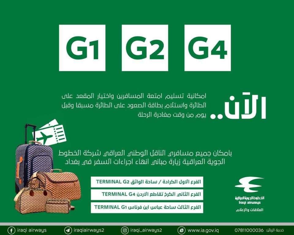 عراقيون/متابعة/ أعلنت الخطوط الجوية العراقية امكانية تسليم امتعة المسافرين واختيار المقعد على الطائرة واستلام بطاقة الصعود على الطائرة مسبقا وقبل يوم من وقت مغادرة الرحلة لغرض تطبيق شروط السلامة والامان وتقليل حالات التلامس والاحتكاك بين المسافرين والوقاية من covid-19 وتطبيقا لتعليمات اتحاد النقل الجوي الدولي IATA. مشيرة الى امكانية قيام جميع مسافرين الناقل الوطني العراقي شركة الخطوط الجوية العراقية زيارة مباني انهاء اجراءات السفر في مدينة بغداد .