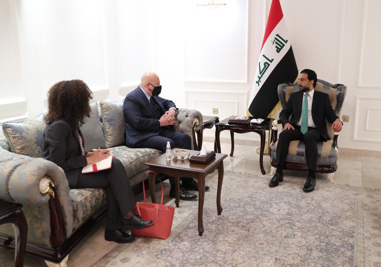واكد الحلبوسي خلال اللقاء أن مجلس النواب سيمضي بإقرار التشريعات اللازمة بهذا الصدد خلال الفترة المقبلة.