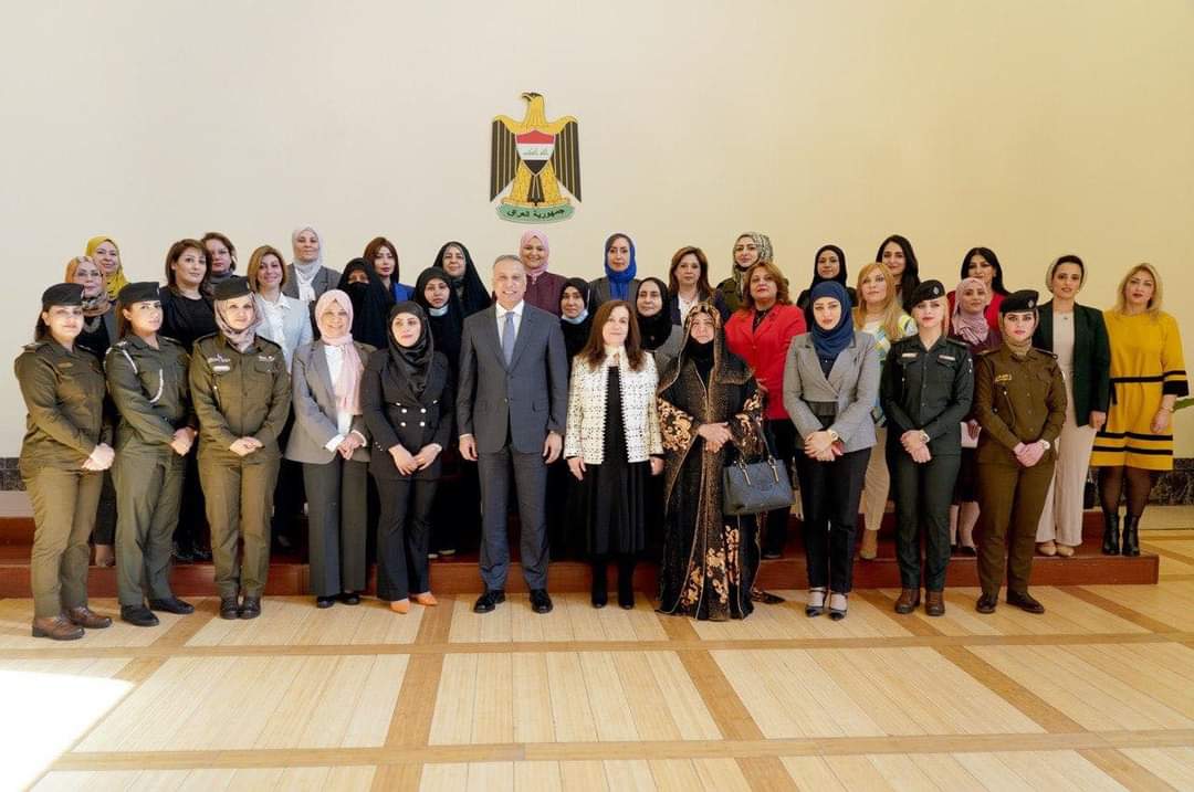 الكاظمي قال في مستهل اللقاء، ونحن نحتفل بيوم المرأة العالمي علينا جميعًا أن نقف بفخر أمام شموخ المرأة العراقية وتفانيها، ومواجهتها الأزمات المتكررة التي مرّ بها العراق.