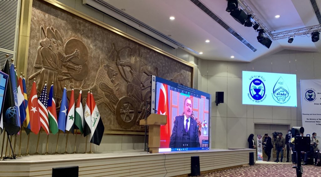 واضاف “نستمع الآن الى الخطاب المصور للممثل الخاص لرئيس جمهوريتنا لمشكلة المياه في العراق فيسل أر اوغلو”.