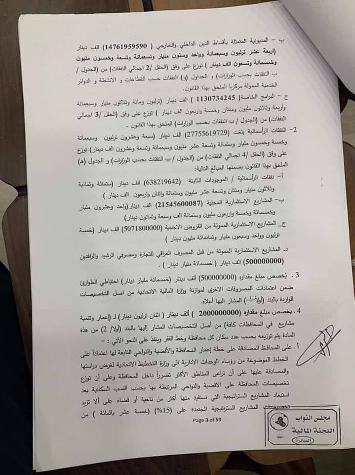 Posted in أهم الأخبار سياسـةبالوثائق.. التعديلات النهائية لمشروع قانون الموازنةby iraq•19 مارس، 202119 مارس، 2021•0 عراقيون /متابعة/ تنشر وكالة انباء عراقيون التعديلات النهائية التي أجرتها اللجنة المالية في موازنة 2021: iraq More by iraq