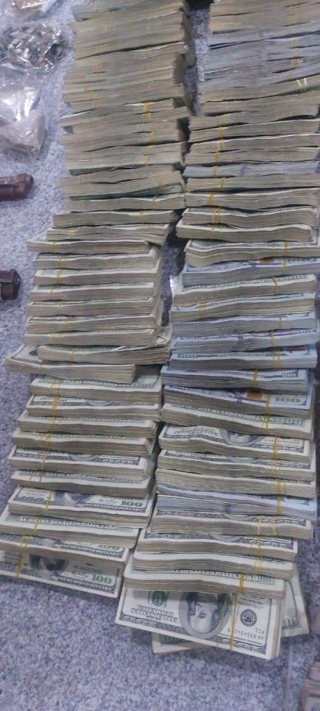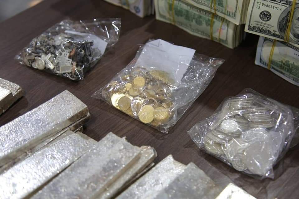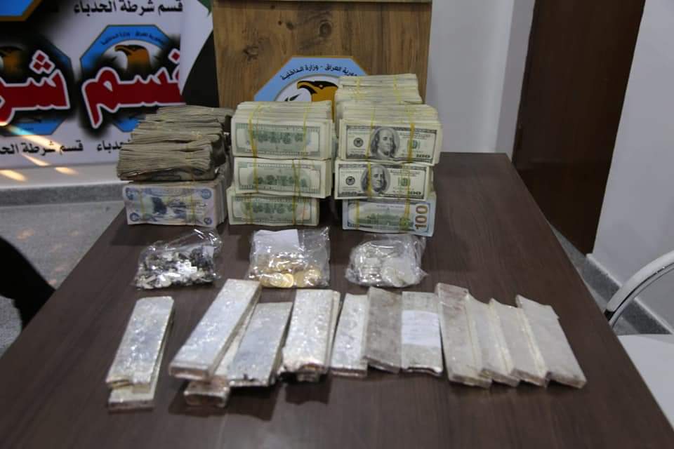 وأضافت : حيث تمكنت من ضبط المبالغ المالية والتي قيمتها ( مليون وخمسمائة وتسعون الف دولار امريكي فئة المائة دولار ) و ( سبعة عشر مليون وخمسمائة الف دينار عراقي ) و ( خمسة عشر كغم من الفضة المقطعة لغرض طبع العملة المعدنية لداعش ) و ( اربعمائة وثمانية وخمسون غرام من القطع الذهبية على شكل عملة نقدية لعصابات داعش ) و ( مئتان وستة وخمسون غرام مواد معدنية مجهولة النوع ) و ( سبعة عشر ونصف كغم سبائك من الفضة ).