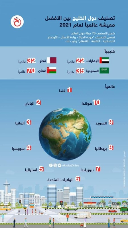 عراقيون/متابعة/ بلغت الأمارات العربية المتحدة المركز 22 وعشرين عالمياً بين الدول الأفضل معيشة لعام 2021 وتضمن التصنيف جودة الحياة ، ريادة الأعمال، الأوضاع الإجتماعية ، الثقافة والأنفتاح.