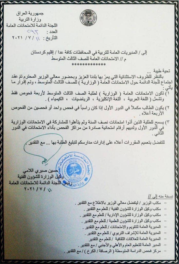 Posted in أهم الأخبار شؤون محليةبالوثيقة.. قرارات وزارة التربية بشأن امتحانات الثالث المتوسطby iraq•12 يوليو، 202112 يوليو، 2021•0 iraq More by iraq