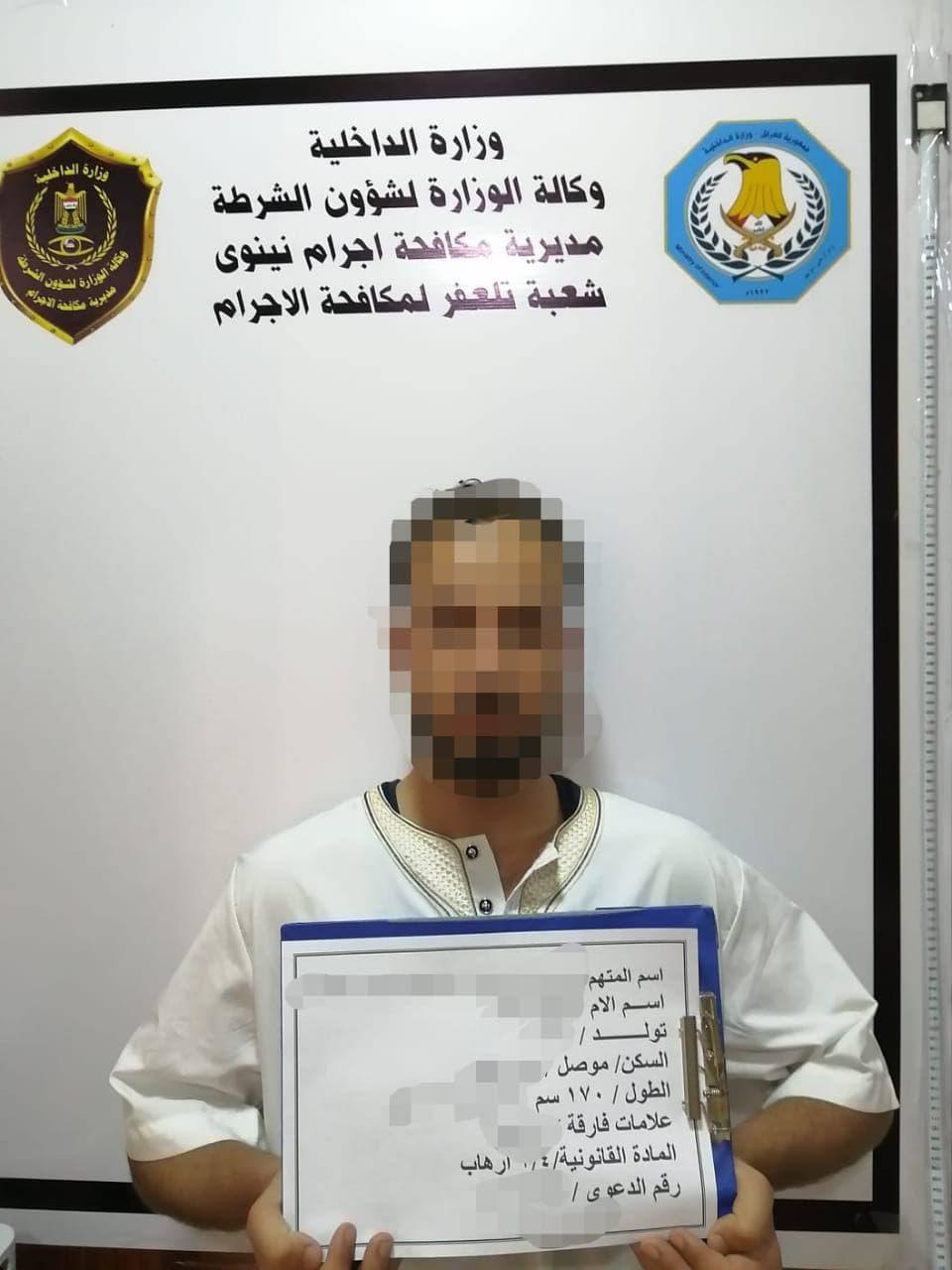 وذكرت الخلية في بيان ، ان “مكتب مكافحة اجرام تلعفر التابع لمديرية مكافحة اجرام قيادة شرطة نينوى تمكن وبعد ورود معلومات دقيقة وجمع المعلومات ومن خلال المتابعة المستمرة والبحث والتحري، من القاء القبض على إلارهابي الخطير المكنى ( ابو يوسف اسد الامنية ) وكان المسؤول عن نقل العبوات الناسفة داخل مدينة الموصل”.