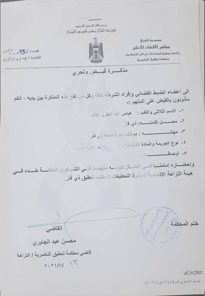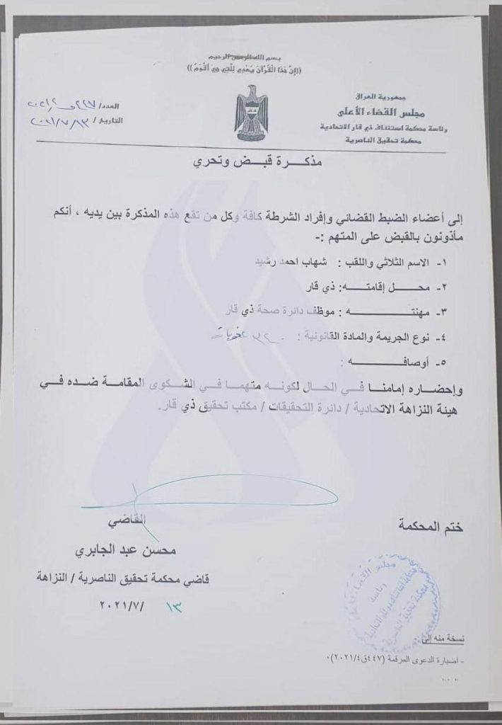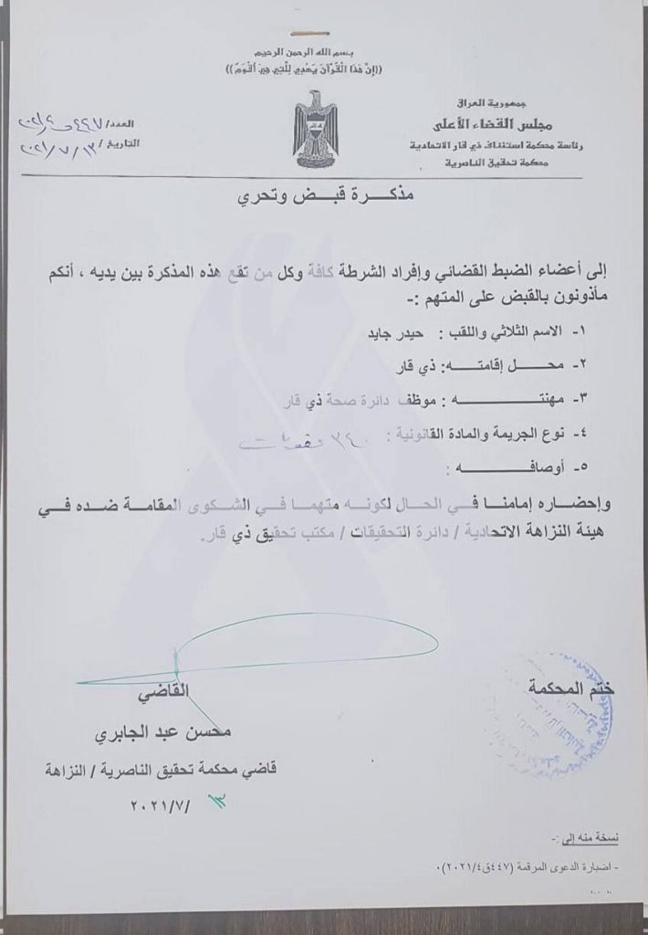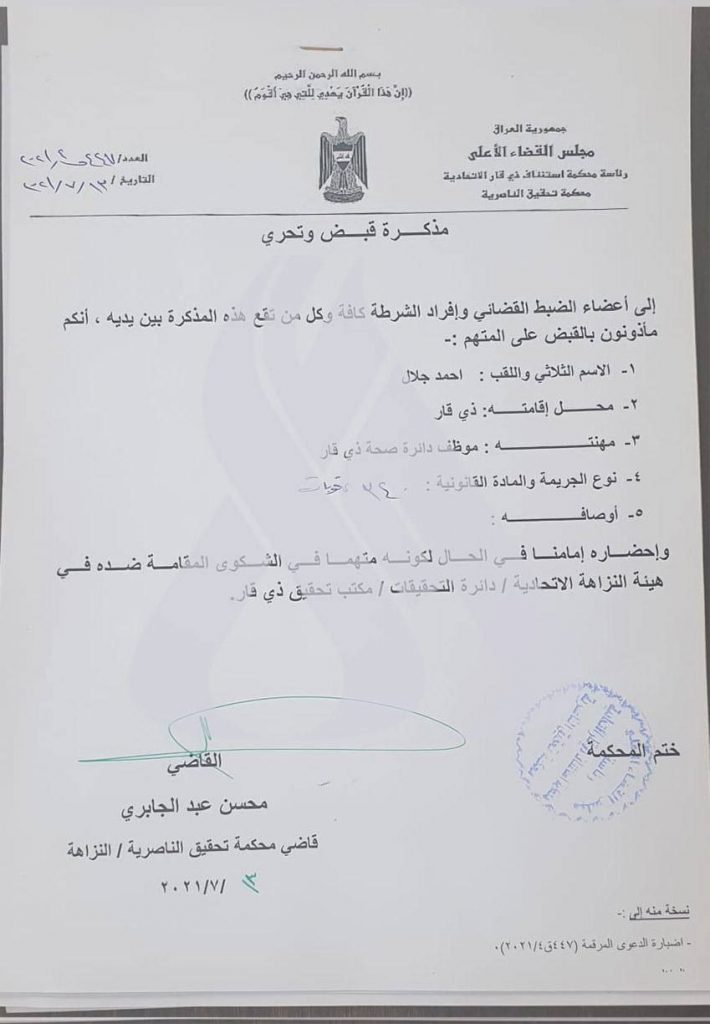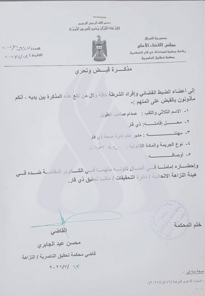 Posted in أهم الأخبار شؤون امنية شؤون محليةبالوثائق … أوامر القبض والتحري الصادرة بحق مسؤولين في صحة ذي قارby iraq•13 يوليو، 202113 يوليو، 2021•0 iraq More by iraq