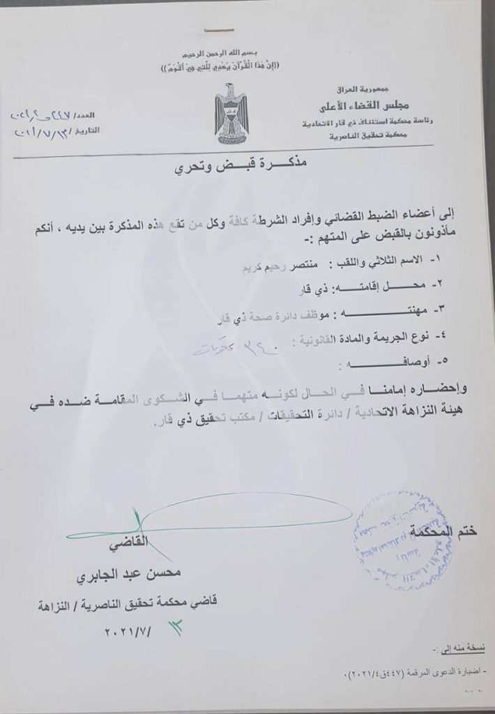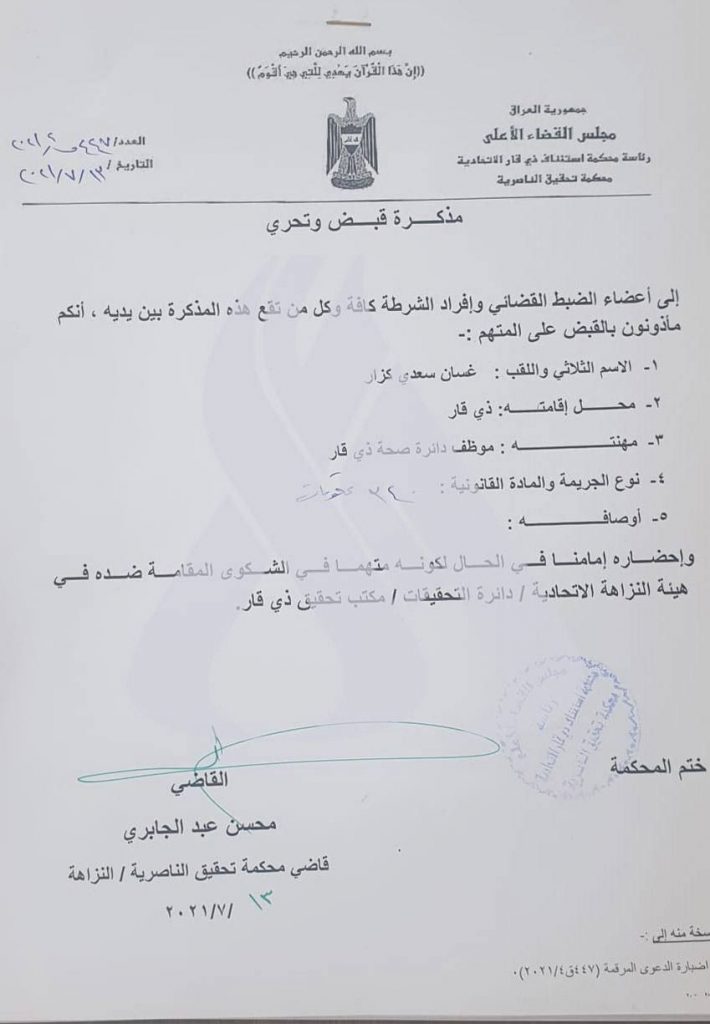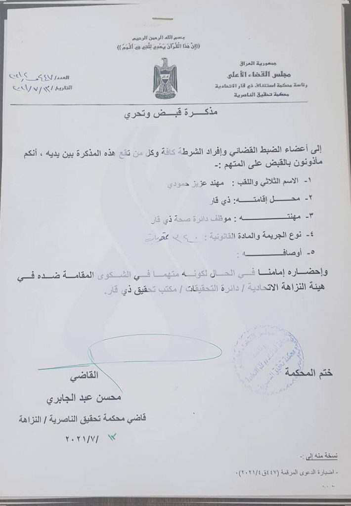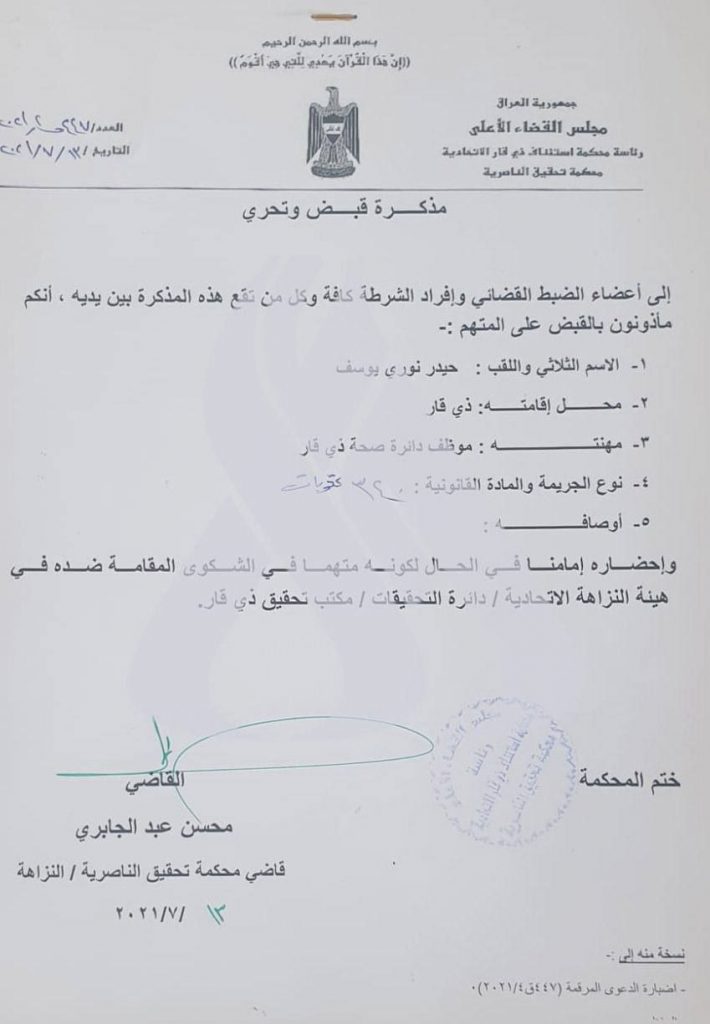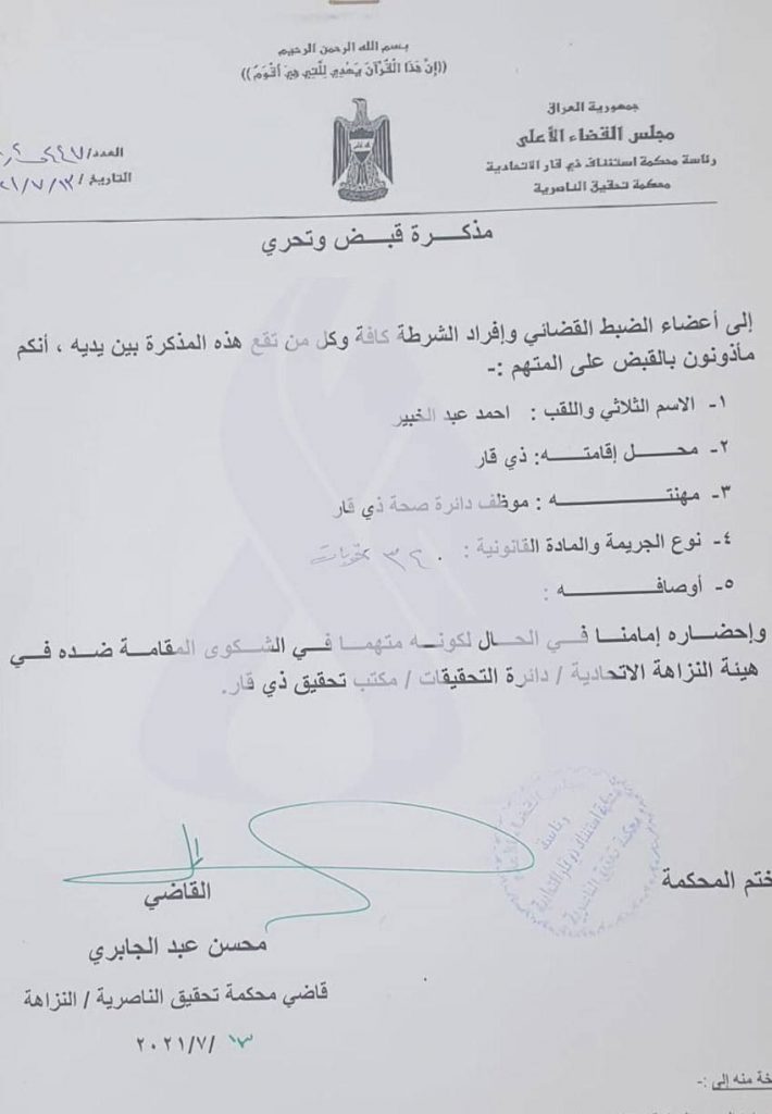 Posted in أهم الأخبار شؤون امنية شؤون محليةبالوثائق … أوامر القبض والتحري الصادرة بحق مسؤولين في صحة ذي قارby iraq•13 يوليو، 202113 يوليو، 2021•0 iraq More by iraq