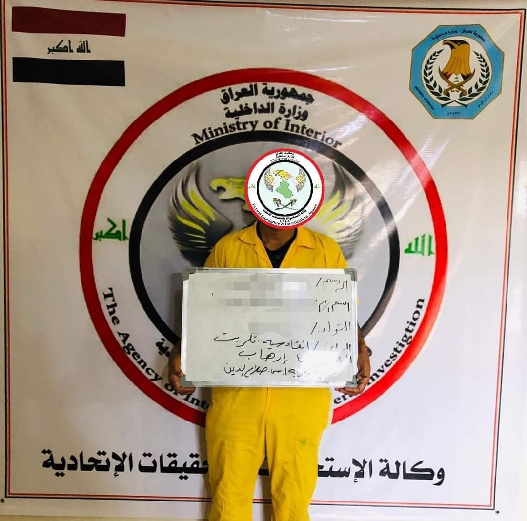 وذكرت الخلية في بيان “في اطار تعقب وملاحقة العصابات الإرهابية، وبناء على المتابعة الميدانية والفنية ومقاطعة المعلومات، تمكنت مفارز وكالة الاستخبارات والتحقيقات الاتحادية في وزارة الداخلية، من خلال عملياتها الاستباقية ،من القاء القبض على إرهابي بارز من عصابات داعش الإرهابية عمل فيما يسمى ديوان الحسبة في صلاح الدين .