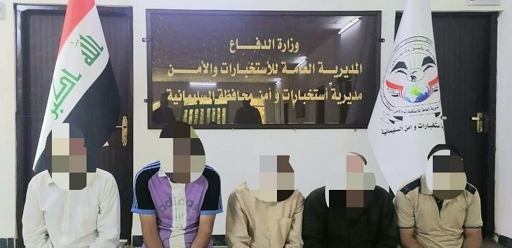 وقالت الوزارة في بيان إنه “حسب توجيهات المراجع العليا بخصوص تكثيف الجهد الاستخباراتي لملاحقة العناصر الإرهابية الهاربة، استطاعت مفارز مديرية استخبارات وأمن السليمانية التابعة إلى المديرية العامة للاستخبارات والأمن في وزارة الدفاع وبالتنسيق مع مديرية أسايش السليمانية من إلقاء القبض على خمسة عناصر إرهابية وذلك من خلال تواجدهم بمحافظة السليمانية صادرة بحقهم مذكرات قبض وفق أحكام المادة (1/4) إرهاب من محكمة تحقيق كربلاء”.